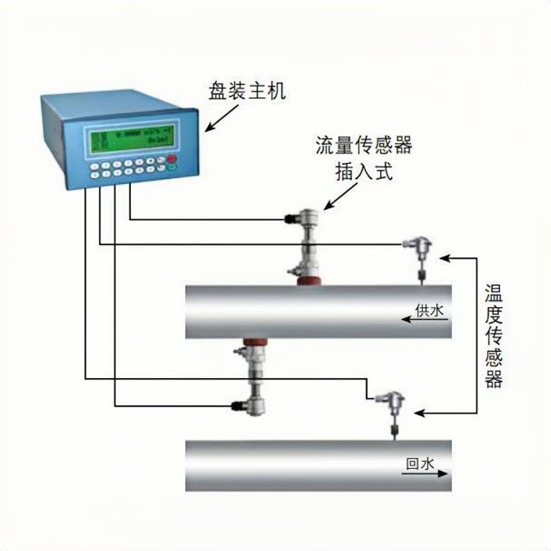 溫度傳感器:供水 / 回水管道各裝 1 支(PT100),間距≥1 米,插入管道中心